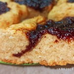 7. Варенье смешать с кукурузным крахмалом и выложить на тесто не доходя до краев 2 см;