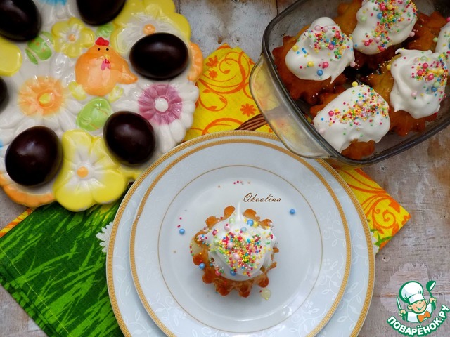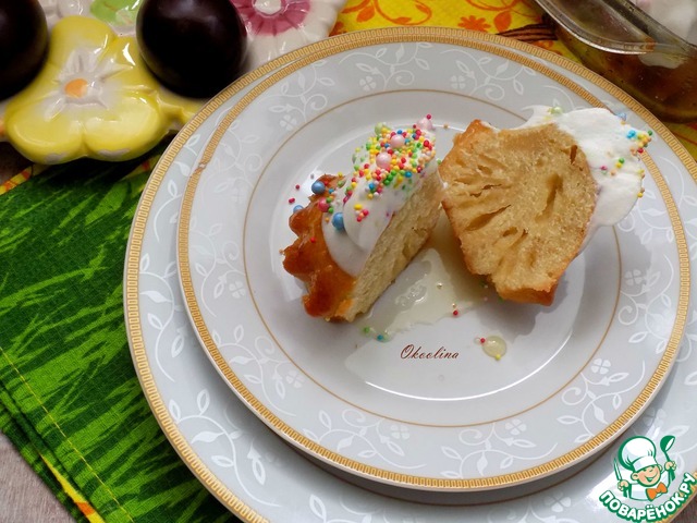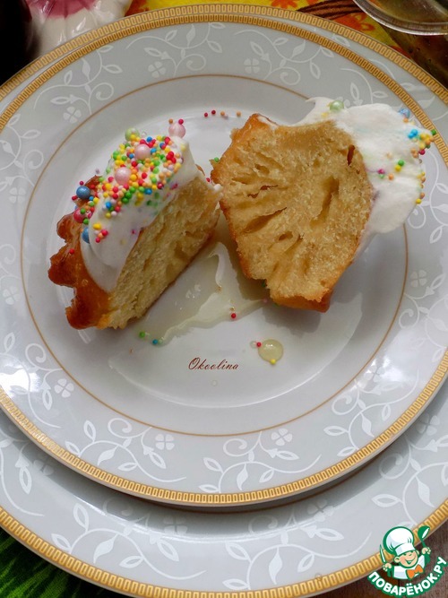 Бабы украсила глазурью и присыпала кондитерской посыпкой.