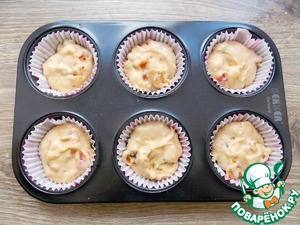 Бумажные формочки вставим в форму для маффинов и заполним их на 2/3 высоты.