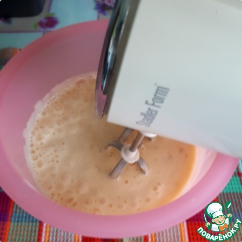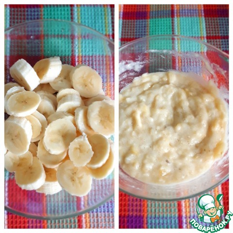 Во взбитую массу добавить размятые бананы и растительное масло.