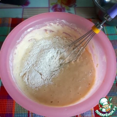 • Во взбитую массу добавить размятые бананы и растительное масло.