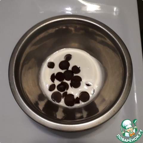 Для глазури сливки нагреть, добавить шоколад, хорошо размешать.