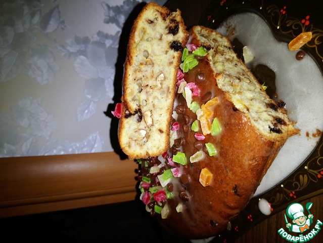 • Полить кекс глазурью и украсить цукатами и орешками.