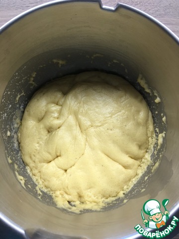 Готовим тесто. Распускаем сахар и дрожжи в тёплом молоке и оставляем в тёплом месте. Когда опара готова, добавить яйцо, масло сливочное, масло раститетльное, соль, муку. Замесить тесто и поставить в тёплое место, чтобы оно поднялось.