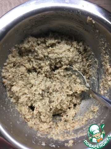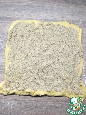 Готовим начинку. Расмельчить орехи на тёрке, добавить сахар, молоко, ром.