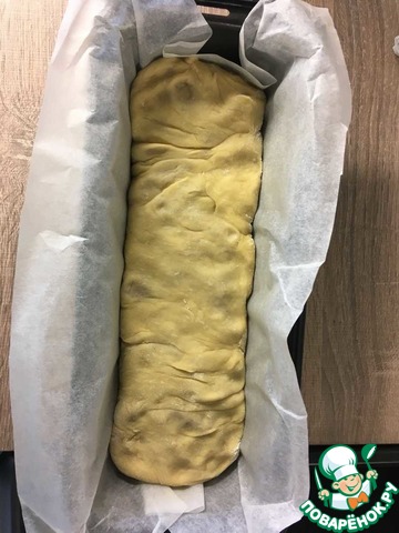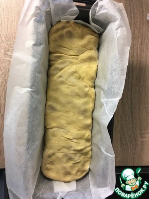 Свернуть тесто в рулет, выложить в форму и дать постоять в тёплом месте минут 20.