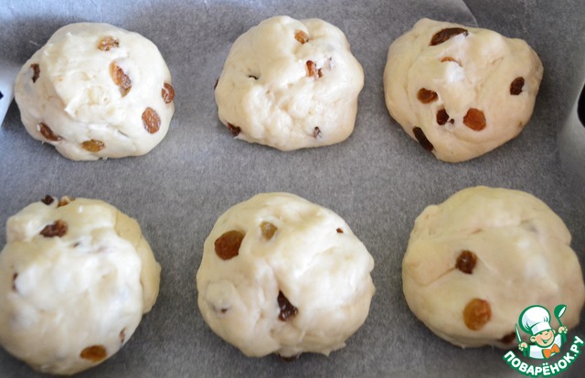 Сформировать булочки, накрыть и поставить подходить на 1 час.