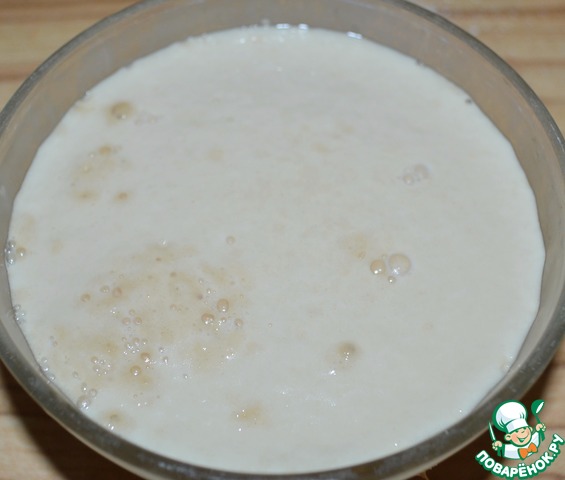 В теплой воде растворить сахар и дрожжи. Накрыть и поставить в тепло на 10 минут.