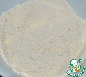 Просеять муку. Добавить масло и ароматизатор - перемешать.