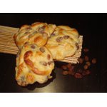 После того как тесто подошло, добавить изюм и тщательно вымесить.