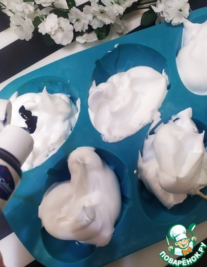 При помощи той же зубочистки нежно накрыть яйцо пеной для бритья. Яйцо должно полностью скрыться.