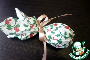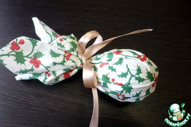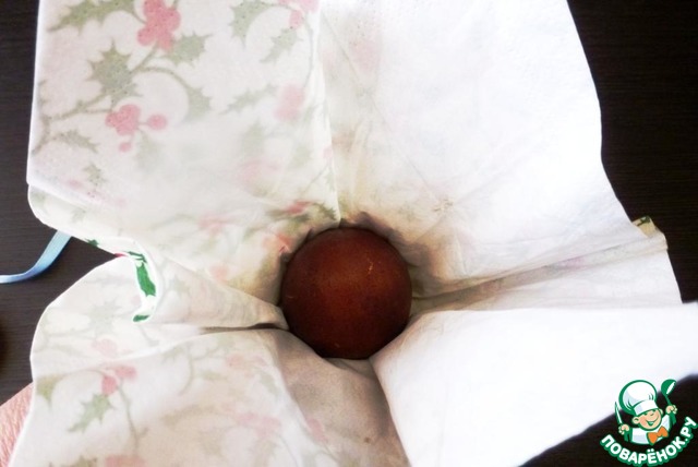 Завязать лентой место соединения салфетки у острого конца яйца.