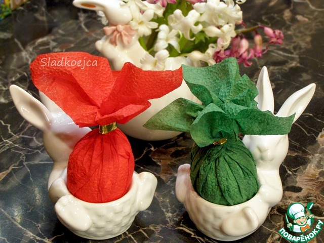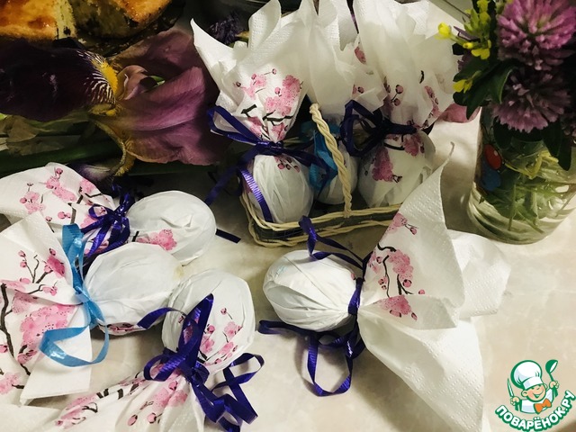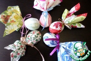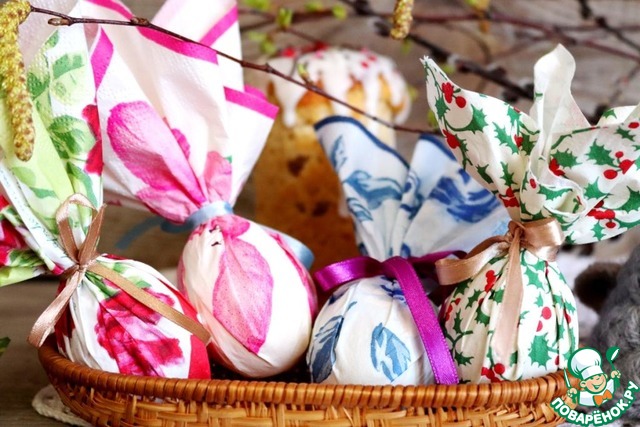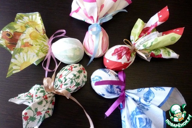 Рецепт «Декор пасхальных яиц салфетками и лентами»: