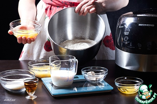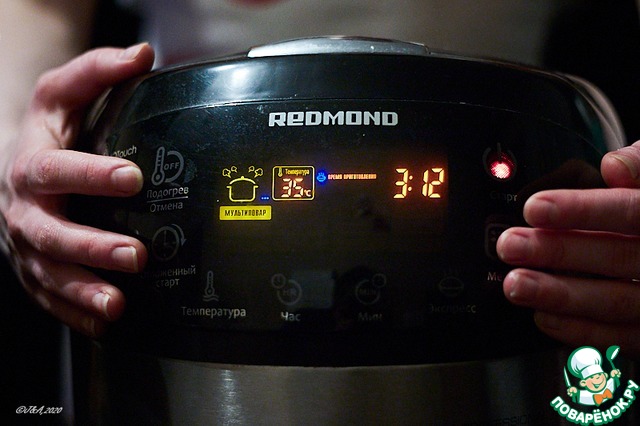 Чашу мультиварки Redmond смажьте тонким слоем растительного масла. Выставите режим "Мультиповар" 35С на 3 часа. Выложите тесто в теплую чашу, закройте крышку и дождитесь окончания программы.