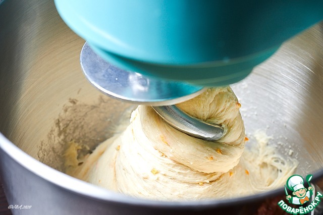Когда масло полностью вмешано в тесто, добавьте цедру.