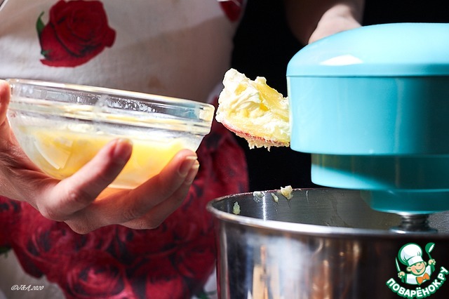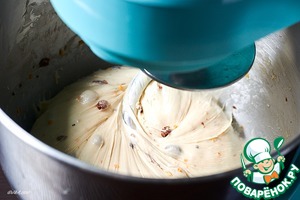 Как только сухие и влажные ингредиенты объединились, по ложке добавляйте очень мягкое масло.