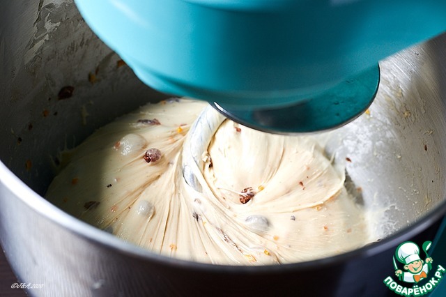 - Коньяк (для теста и замачивания изюма) — по вкусу