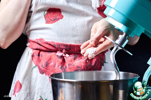 Миксер с насадкой крюк запустите на среднюю скорость.
