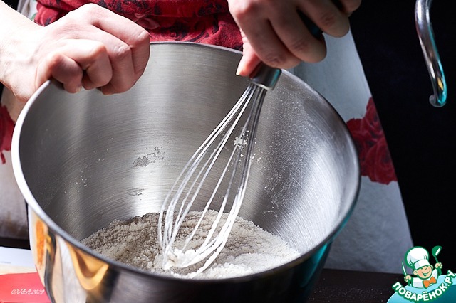Тщательно перемешайте сухие ингредиенты венчиком.