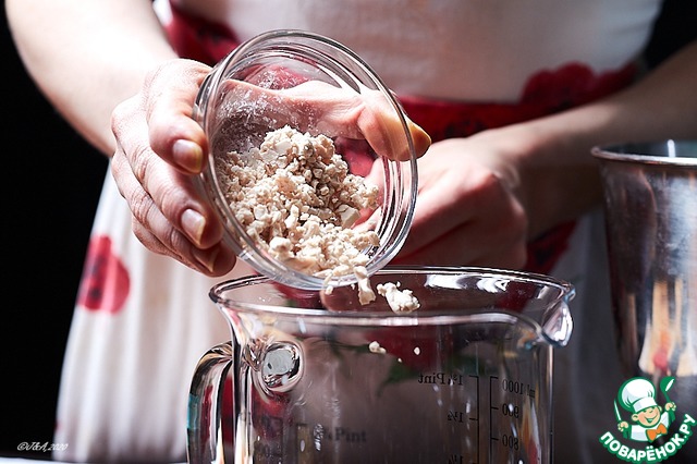 Раскрошите дрожжи. У меня они свежие. На сдобное тесто их нужно около 5% от общего веса муки, плюс все зависит от их качества.