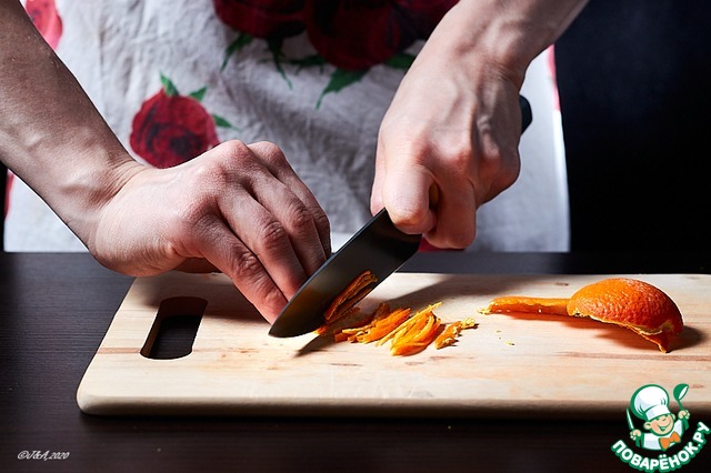 С цедры половины апельсина дочиста снимите белый слой, это избавит ее от горечи.