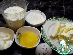 Подготовим продукты, из которых будем делать тесто. Из этого количества получается 18 тарталеток диаметром 6 см.