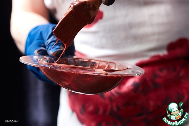 Энергичными, втирающими движениями вмешивайте Mycryo до полного растворения. Сделайте тест на темперирование. Обмакните в массу холодный нож или уголок шпателя и отложите в сторону, если через 1,5 минуты шоколад стал матовым и не остается следов от прикосновения губ (не целуйте его слишком долго, может не выдержать), это значит, он дошел до кондиции.
