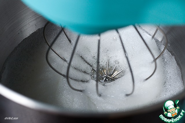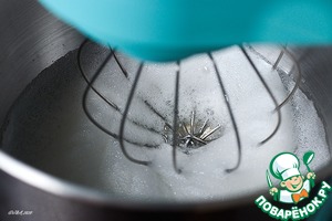 Белок с кислотой взбить в пушистую пену, пока не исчезнет весь жидкий белок.