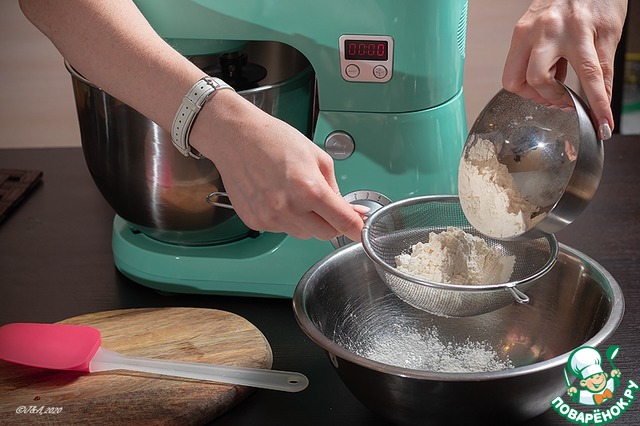 В первом пункте написано «Все сухие ингредиенты просейте в чашу»