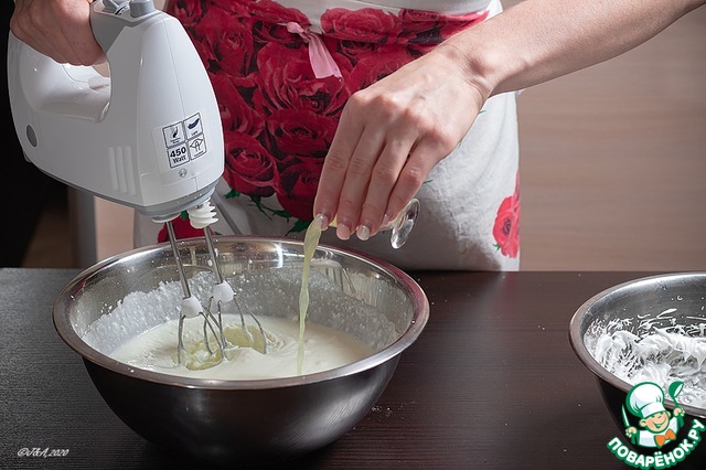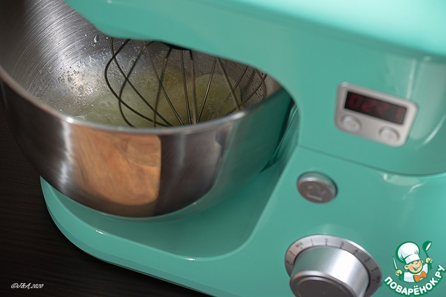 Яйцо (1 шт.) взбейте с сахаром до пышности. Сахара возьмите 50 гр. от общего количества.