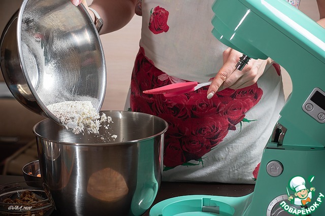 Сухие ингредиенты аккуратно вмешать лопаткой вручную.