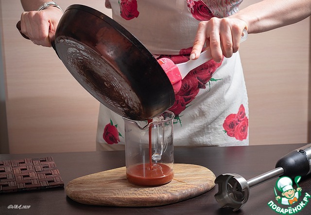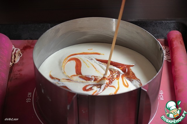 Добавьте 40 гр. карамельного соуса. Перемешайте лучинкой.