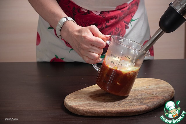 Сначала соус жидкий, но, настоявшись за ночь он загустеет.