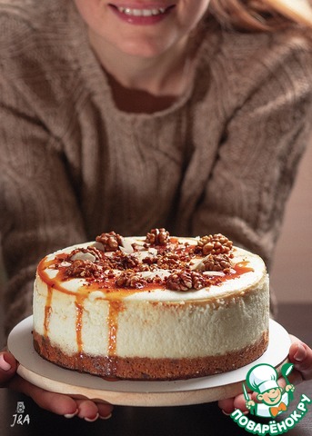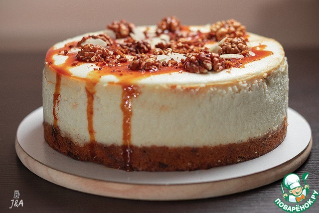 Духовку разогреть до 160С. На дно поставить противень с водой. Выпекать 60-70 мин. Духовку желательно не открывать. Готовность определить через 60 мин- он должен быть крепкий по краям и дрожать в середине. Дать остыть в духовке. Потом достать, накрыть пленкой и убрать в холодильник на ночь. При желании украсить орехами, карамелью, миндальными лепестками.