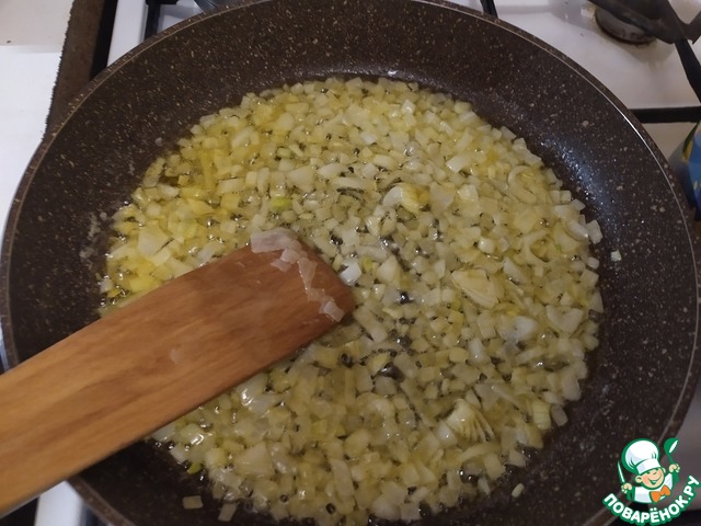 Хорошенько обжарим в нём лук, чтобы не хрустел в готовом блюде.
