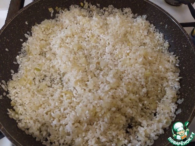 Добавим к нему рис и тоже обжарим.