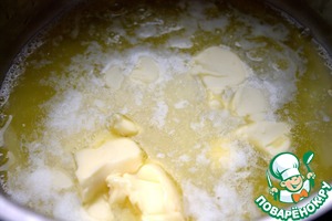 Всыпать, когда масса остынет до комнатной температуры. Я ставила остужаться на лоджию и перемешивала.