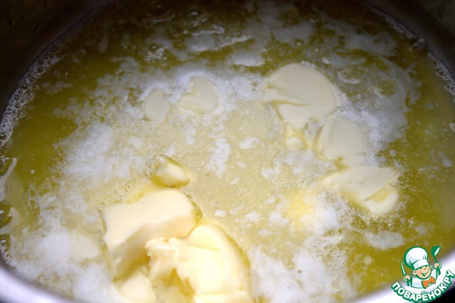 Поставить на маленький огонь и держать, помешивая, пока не появятся пузырьки по краям.