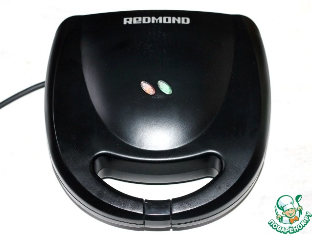 9. Открываем крышку мультипекаря REDMOND и равномерно раскладываем тесто на нижнюю панель прибора. Закрываем крышку.