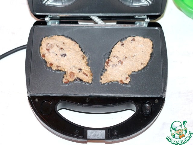 10. И через 2-3 минуты загорается зеленый свет, печенье испеклось. Силиконовой или деревянной лопаткой выкладываем печенье и загружаем новою порцию теста. Очень быстро!