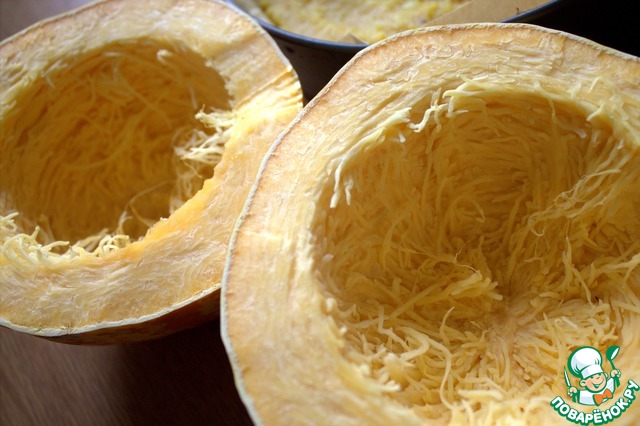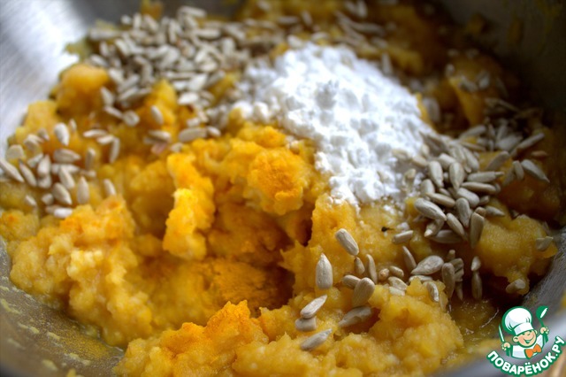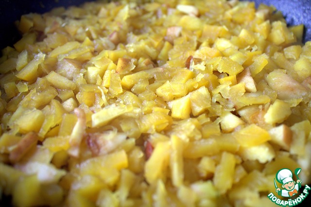 Начну с начинки. Мы купили внучке тыкву, но она оказалась волокнистой, рыхлой и мне отдали на выпечку. |
