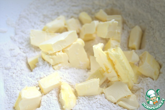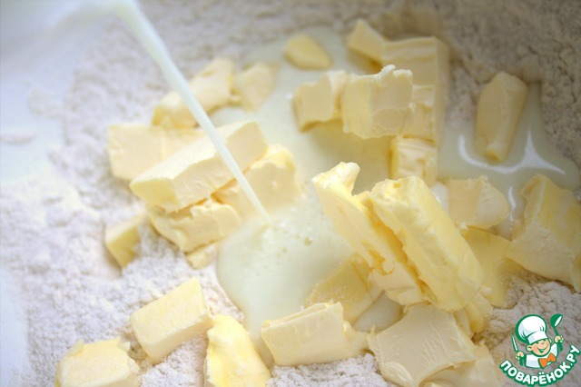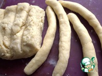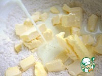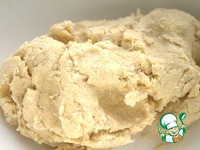 Вымесить рукой крутое песочное тесто. Если тесто не собирается в ком, влейте по ложке воды или молока. |