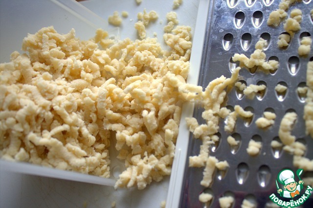 Кусочек теста из морозилки быстро натереть на крупной тёрке. |