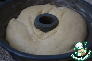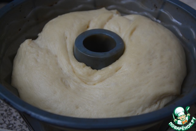 Форму для кекса смазать сливочным маслом. Выложить тесто. Накрыть полотенцем и оставить на 1 час.