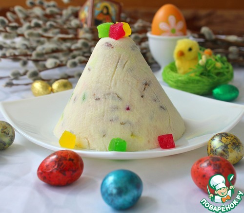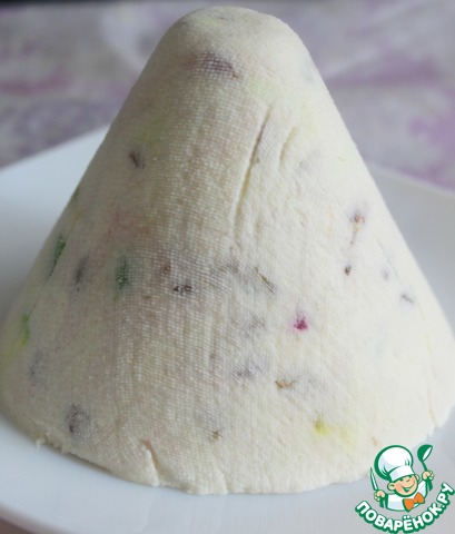 Переворачиваем пасху на блюдо и снимаем марлю.