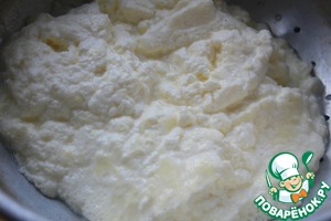 Аккуратно, шумовкой выложить сгусток на дуршлаг.