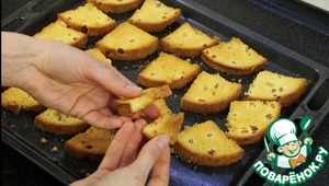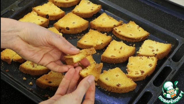 К этому времени сухарики готовы. Я сушила при 120 градусах около часа. Даю полностью остыть.