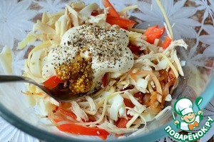 5 ст. л. смеси заправить майонезом, перцем, горчицей, перемешать.