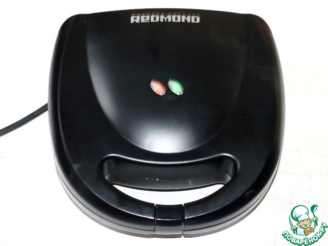 9. Подготовим мультипекарь. Открываем крышку мультипекаря и устанавливаем панель для вафель. Закрываем крышку прибора и подключаем к электросети. Загорается красный индикатор. Когда прибор нагреется, загорается зеленый индикатор.