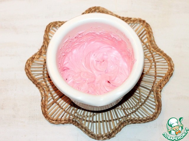 1. Белки отделить от желтков и взбить с щепоткой соли до мягких пиков.